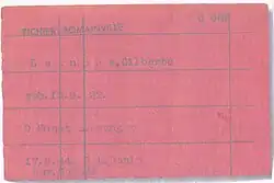 She was registered,[15] at the beginning of August, to be the last woman admitted to Fort de Romainville, a stop before deportation. Her file, numbered 6 862, described her as having been born on 15 September 1922 and being nine months pregnant ("9 Monat schwanger") when she was among the prisoners aboard the last convoy[n 2] (I.264, 15 August 1944) of deportees from Paris (quai des bestiaux, gare de Pantin) to Germany and, like some of her fellow inmates who were considered unfit for transportation, she was evacuated from the Fort of Romainville on 17 August to a local Hospice in Saint-Denis where she gave birth on 25 August 1944 to her second child, a daughter named Christianne. Letuppe's release may have been ordered by Abwehr Colonel Oscar Reile. He supposedly left Paris on 18 August. The fort of Romainville was under the control of the German military authorities.