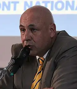 After declaring that he had broken with his former activism, he joined the Front National in 2008 and became a local branch leader from October 2010 to May 2011 and from March 2013 onwards.[5] He has been a Front National candidate in every election since 2008 and in 2013, the Front National chose him to lead its list for the municipal elections in Nantes (the 6th town of France).[6][7] He is the father of Gauthier Bouchet, the FN municipal councillor of Saint-Nazaire.