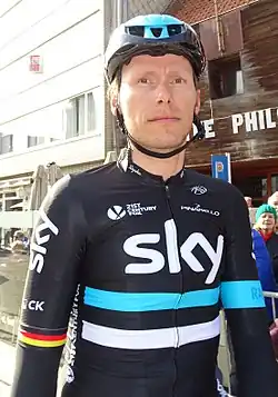 Christian Knees (born 5 March 1981) is a German former professional road racing cyclist, who rode professionally between 2004 and 2020, for the Wiesenhof, Team Milram and Ineos Grenadiers teams.[3] He won the German National Road Race Championship in 2010.[4] In 2011 he was originally going to join the Australian team known as Pegasus but left after they failed to secure a UCI Professional Continental license. He ultimately joined Team Sky as a domestique.[5] He remained with the team as a rider until announcing his retirement from the sport in December 2020, moving into a role within the team's racing and performance areas.[3]