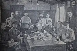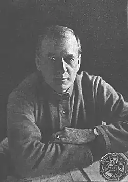 His head was injured during street clashes with police forces over the Potemkin issue;[24] while recovering, Rakovsky befriended the Romanian poets Ștefan Octavian Iosif and Dimitrie Anghel, who were publishing works under a common signature—one of the two authored a sympathetic portrait of the socialist leader, based on his recollections from the early 1900s.[25] Throughout these years, Rakovsky, was, according to Iosif and Anghel, "continuously bustling; disappearing and appearing in workers' centers, be it in Brăila, be it in Galaţi, be it in Iaşi, be it anywhere, always preaching with the same undaunted fervor and fanatical conviction his social credo".[26]