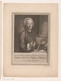 Christian Tobias Damm (9 January 1699 – 27 May 1778) was a renowned German Classical philologist, and the less than orthodox theologian who was rector (1730) and prorector (1742) of the Köllnische Gymnasium, the oldest in Berlin, but prematurely pensioned off in 1766, in the wake of scandalized accusations of trends towards Socianian doctrines in some of his work, to his lasting bitterness.[1]