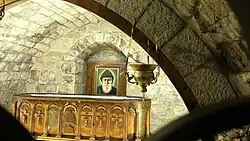 Christian saints such as Marina the Monk are also honored among the Druze, who refer to her as "Al-Sitt Sha'wani'", the shrine of "Al-Sitt Sha'wani'" is located in the region of Amiq on the slopes of Mount Barouk to the east, overlooking the Beqaa Valley and Mount Hermon.[124] Due to the Christian influence on the Druze faith, two Christian saints become the Druze's favorite venerated figures: Saint George and the Prophet Elijah.[125] According to scholar Ray Jabre Mouawad, the Druze appreciated the two saints for their bravery, Saint George because he confronted the dragon and the Prophet Elijah because he competed with the pagan priests of Baal and won over them.[125] In both cases the explanations provided by Christians are that Druzes were attracted to warrior saints that resemble their own militarized society.[125] Saint George is considered the patron saint of Lebanese Christians,[126] Palestinian Christians,[127] Syrian Christians,[128] and the Druze.[129]