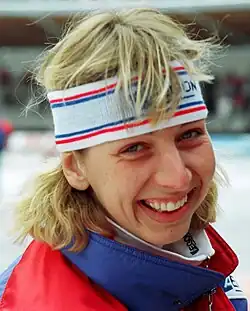 Christine Jacoba Aaftink (born 25 August 1966) is a Dutch former speed skater.[1] She made her international debut in 1988 and was the best Dutch sprinter in the first half of the 1990s.[2] She specialized in the 500 m and 1000 m distances, in which she competed at the 1988, 1992 and 1994 Winter Olympics. Her best achievements were fifth and fourth place in 1992 in 500 m and 1000 m, respectively.[3] In 1994 she was the Olympic flag bearer for the Netherlands. She won two bronze medals at the World Sprint Speed Skating Championships for Women in 1990 and 1991.[4]