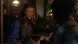 ![]() Melissa and Dana Scully open presents on Christmas in a flashback. Gillian Anderson's younger sister Zoë was chosen to play Scully in the sequence. | |