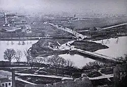 Christmas Møllers Plads is located outside Copenhagen's former Amager Gate. Amager Fælledvej was connected to the Amagerbrogade in the 1900s. At this point, the site was still surrounded by open countryside. Being located inside the so-called demarcation line which enforced building restrictions outside the city's fortification, it was only allowed to build wooden structures. The fortifications had been removed on the other side of the harbour but Christianshavns Vold was still military area and the demarcation line was still in force. One of the few buildings at the site was Røde Mølle (Red Mill). In 1909, all building restrictions were finally abolished. The area between Amagerbrogade and Amagerfælledvej from 1912. Vermlandsgade was created in 1923. The street Ved Stadsgraven was constructed in the 1930s, linking the site with Amager Boulevard.