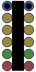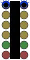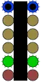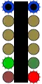 Modern drag races are started electronically by a system known as a Christmas tree. A common Christmas tree consists of a column of seven lights for each driver or lane. Each side of the column of lights is the same. At an NHRA national event, the Christmas Tree, which was first used in April 2011, from the top down, consists of a blue LED light set (top and bottom halves), then three amber bulbs, then a green bulb and a red bulb.[1] At other events, and NHRA national events prior to 2011, the function of the blue light set was performed by four smaller amber bulbs.