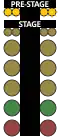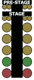 Vehicles have advanced to the pre-staging point 7 in (180 mm) behind the starting line, breaking the first set of light beams on the track and activating the Christmas tree starting lights. |