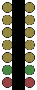The three large amber lights are used to count down. With a "standard" tree, they light sequentially with a 5⁄10 second delay in between; after the final light is lit, there is an additional 5⁄10 delay until the green light is lit. With a "professional" tree, all three light up simultaneously with a 4⁄10 second delay before the green light. In addition, in a standard tree with a handicap start, the light sequence starts for the slower car first, then the first light is turned on for the faster car after the difference between the two cars' dial-in is reached (for example, in a race between a 10.70 second car and an 11.30 second car, the first amber light is turned on in the lane with the 11.30 second car, and the sequence begins; the first amber light for the lane with the 10.70 second car is turned on .600 seconds later). |