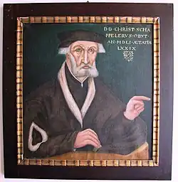 Christoph Schappeler (1472 – August 25, 1551) was a German religious figure, reformer, and a preacher at St. Martin's in Memmingen during the early 16th century and during the Protestant Reformation and the German Peasants' War. He tended to side with the poor, causing the senate to regulate his sermons in 1516. However, by 1521 the climate had changed such that the senate was giving him support. When he was excommunicated in 1524, the Senate refused to follow the bishop's order to have him banished.