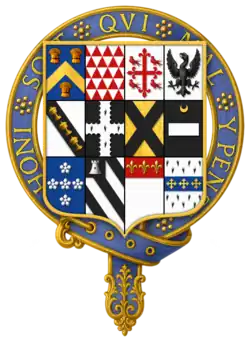 In 1564, he became one of the Queen's gentlemen pensioners and a gentleman of the privy chamber, and in July 1572 captain of the yeomen of the guard.[14][15] On 11 November 1577, he became vice-chamberlain of the royal household and was sworn into the Privy Council. That same month he was knighted.[16] In June 1578, the Queen formally granted him the Bishop of Ely's house in Ely Place, Holborn, despite vigorous protests from the Bishop.[17] These appointments, with the valuable grants the Queen showered on him in these early years,[18] prompted rumours that he was her lover, a charge specifically made in 1584 by Mary, Queen of Scots.[14][19]