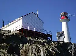 Along with electronic navigational aids, the five-second-flash lighthouse is about 21 metres (69 ft) above water level (depending on tides). The station has a helicopter landing deck and rescue boat.