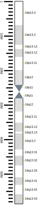 - ^ "Human chromosome 19: entries, gene names and cross-references to MIM". UniProt. 2018-02-28. Retrieved 2018-03-16.
