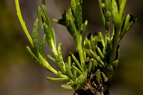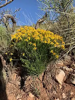 Chrysactinia mexicana, common name Damianita daisy,[2] is a species of flowering plants in the family Asteraceae, native to Mexico and to the southwestern United States. It has been found in Texas, New Mexico, Aguascalientes, Chihuahua, Coahuila, Durango, Guanajuato, Hidalgo, México State, Nuevo León, Oaxaca, Puebla, Querétaro, San Luis Potosí, Zacatecas, Tamaulipas, and Veracruz.[3][4][5][6][7]