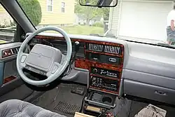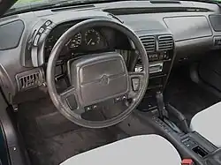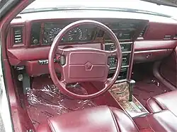 For 1990, the LeBaron's interior was refreshed, featuring an all new dashboard, gauge cluster, door panels, and center console design. All of the new components were designed to be smoother and more flowing than the comparatively boxy 1987-89 interior style, making it more in tune with the "aero" revolution of the early 1990s. The 1992 LeBaron coupes and convertibles could be ordered with a new "sport package", which featured a monochrome appearance including body-colored grille, accent stripe, and decklid logo. The package also included 14-inch "lace" style wheelcovers and a black strip below the taillights in place of chrome, with special blacked-out window moldings on coupe models.[11]