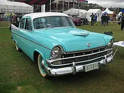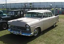 The Chrysler Royal is an automobile which was produced by Chrysler Australia from 1957 to 1963. After investing in tooling to stamp body panels for the 1954 P25 series Plymouth locally, and with Chrysler headquarters in Detroit unwilling to assist in the costs of retooling for the new US models, Chrysler Australia made the decision to develop their own range, using as much of the existing tooling as possible, whilst also realising that the new car had to appear as different as possible. The doors and basic structure of the P25 sedan was retained, and with input from Australian and American Chrysler designers, the 1955 US Plymouth front sheetmetal was adapted to the P25 body and the rear quarter panels redesigned. They also added a wraparound rear windscreen, which caused development problems with Pilkington Glass, the Australian suppliers, who struggled to get the correct curved shape.[2]