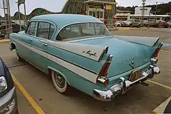 The first version of the Chrysler Royal, the AP1, was introduced in May 1957.[2] It was a development of the American Plymouth P25 design[3] of 1954 which had itself been produced by Chrysler Australia as the P25 Plymouth Cambridge and Cranbrook, the D49 Dodge Kingsway and the SP25 De Soto Diplomat.[4] Original designations for the three different designs were AD1 for the Dodge, AS1 for the DeSoto and AP1 for the Plymouth.[2] Plans to market the updated version under these three names were dropped late in the development program and the new model would be sold only as the Chrysler Royal[5] thus revising a name used by Chrysler in the US market[5] from 1937 to 1950. The design chosen for the final model was that proposed for the Plymouth variant, thus the AP (Australian Plymouth) designation was adopted, and changed to stand for Australian Production.[2] The Royal differed from the P25 in using front and rear mudguards similar to those on the 1956 US Plymouth and a rear window which was larger than that of the P25.[5] The AP1 was originally only produced as a Royal four-door sedan; the Plainsman four-door station wagon was introduced during 1958.[6]