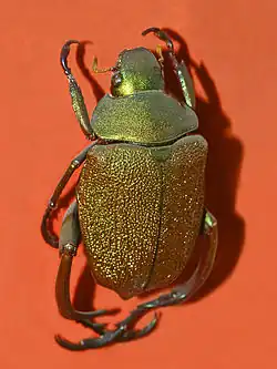 Chrysophora chrysochlora, the Shining leaf chafer beetle, is a species of beetles of the scarab beetle family.