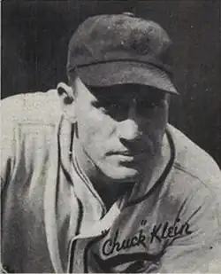 Charles Herbert Klein (October 7, 1904 – March 28, 1958), nicknamed "the Hoosier Hammer" because of his Indiana roots, was an American professional baseball outfielder. Klein played in Major League Baseball (MLB) for the Philadelphia Phillies (1928–1933, 1936–1939, 1940–1944), Chicago Cubs (1934–1936), and Pittsburgh Pirates (1939).