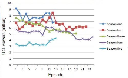 As the second season finished, flagging ratings put Chuck in danger of cancellation, but fans mounted a successful campaign to encourage NBC to renew the show.[5] The campaign was unique in that fans specifically targeted a sponsor of the show, the Subway restaurant chain, leading to the chain striking a major sponsorship deal with NBC to help cover costs of the third season.[6] The series' renewal was uncertain in each subsequent season. The fifth season was the last, beginning on October 28, 2011, and moving to Friday nights at 8 p.m./7 Central.[7] The series concluded on January 27, 2012, with a two-hour finale.[8]