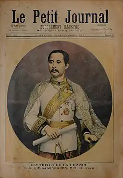 The visit was extensively covered by the French press, especially the illustrated periodicals. The French was, however, the most critical of Chulalongkorn's tour. La Revue de Paris wrote that the entire tour was out of sheer desperation to resist French expansion.[10] The conservative Le Petit Journal accused Chulalongkorn of being an ardent Anglophile who couldn't understand France's republican institutions, and that Paris had showcased incomparable grandiose to the potentate that left him "enchanted". Another conservative newspaper, Le Figaro, described Chulalongkorn as a "king of dignity like that of the Europeans", but who lived in wealth whilst the ordinary Siamese lived in poverty. The L'Illustration was less critical, simply commenting that Chulalongkorn had some affection for French culture and that is visit attracted crowds due to Paris' obsession with orientalism. In contrast, several papers were much more hostile than the before mentioned. In L'Intransigeant, Henri Rochefort described Chulalongkorn as one of France's "most openly declared of our enemies" who Britain supports "with all its strength to make demands", while the Le Correspondant described him as France's "most cruel enemy in the Far East". This anti-Siamese sentiment was also shared not only in right-wing papers, but also the socialist La Petite République who said Chulalongkorn had "no other care except to create embarrassment for us [the French]". After the Franco-Thai War in the 1940s, these sentiments were quoted in Le Martin.[9]