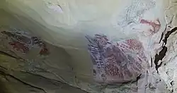 The smooth and irregularly shaped shallow sandstone cave contains numerous drawings apparently depicting the Chumash cosmology and other subjects created in mineral pigments[4] and other media over a long period ranging from about 200 up to possibly 1000 years or more. There is also evidence of graffiti beginning with early white settlers, which eventually led to creation of a protective physical barrier and State Historic Park status. In 1972 it was added as Site #72000256 on the National Register of Historic Places.[5]