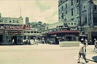Vehicles were able to enter the arcade from Nathan Road. Shops were owned mostly by Chinese merchants and offered a variety of items and services, including audiovisual products, fur clothing, jewellery, watches, and currency exchange.[11] There were also foreign-style bars, including one called Henry's Café, which were popular with British servicemen at the time.[5]