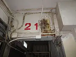 There are over 110 guesthouses in the five blocks, providing as many as 1,200 rooms, with various sizes and serviceability, depending on price, ranging from less than 100 HK$ up to 600–700 HK$.[27] Rooms and/or floors are usually individually owned and managed. In most rooms, space is at a minimum, having one or two beds, a small TV, an "all-in-one toilet/shower", and a small closet. In cheaper rooms, beds are hard, with a thin mattress and a small pillow. Most, if not all rooms are equipped with an air conditioner. Many rooms do not have windows or only small ones facing into the dimly lit wells, making it hard to distinguish night from day.[28]