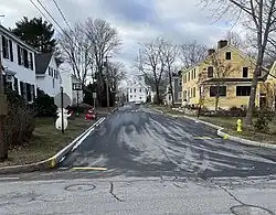 Church Street is a historic street in Yarmouth, Maine, United States. It runs for about 425 feet (142 yd) from West Elm Street in the east to Hillside Street in the west. It was one of the first streets laid out after the town's population moved inland from the Broad Cove area in the 19th century. Several of its buildings are homes dating to the late 18th and early 19th centuries.