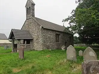 The church is built of local limestone in the Perpendicular style.[4] The entrance is through a timber porch[4] and under a bell gable.[5] The building has suffered from subsidence and the bell gable is off-vertical.[6]