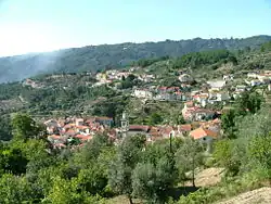 A view of the town of São Gião, with the church peaking in the middle