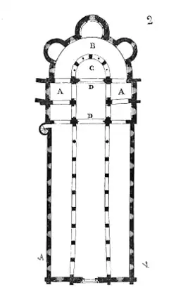 It is one of the oldest examples of an ambulatory with three radiating chapels.