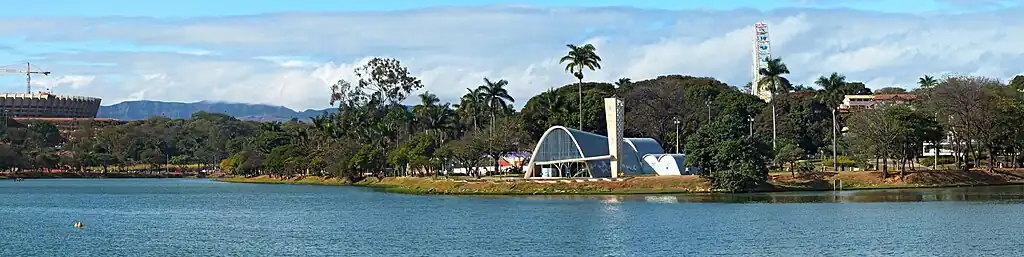 The Church of Saint Francis of Assisi (Igreja de Sao Francisco de Assis, commonly known as the Igreja da Pampulha) is a chapel in Pampulha region of Belo Horizonte, in the state of Minas Gerais, southeastern Brazil. It was designed by the Brazilian architect Oscar Niemeyer in the organic modern style. It is the first listed modern architectural monument in Brazil and consists of four undulating concrete parabolas with outdoor mosaics. The interior hosts a mural by Candido Portinari, and the exterior features a landscape designed by Roberto Burle Marx.[1]