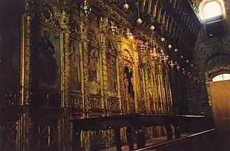 A fire in 1970 damaged much of the interior, including extensive damage to a section of the iconostasis together with the corresponding icons.[3] The iconostasis has been partially restored and was re-plated with gold between 1972 and 1974. During the subsequent renovations of the church, on November 2, 1972, human remains were discovered in a marble sarcophagus under the altar, and were identified as part of the saint's relics (not all having been removed to Constantinople, apparently).