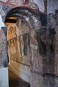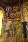Three layers of frescoes inside the church have been preserved to this day. The earliest layer consists of three images of the martyrs of Edessa in the western arch dating to the mid-13th century. The second layer is the images in the narthex; it is stylistically influenced by the Italo-Cretan school from the time of the Council of Florence in the 1430s. The local bishop Ignatius took part in the council and may have propagated the idea of ecumenism. The inscriptions of the second layer are in Bulgarian and Greek. The latest layer of frescoes is that of the images in the southern gallery from the 16th century.