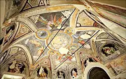 On the left aisle there were five chapels, one of which was granted to the University of Pavia by the Dominican fathers in 1392. Another chapel, built in the second half of the 15th century by Giovanni Matteo Bottigella, remains almost completely intact.[10] This chapel was used as a burial place for the members of the Bottigella family, and contained the relics of Sibillina Biscossi. It originally housed the large Pala Bottigella by Vincenzo Foppa, which was initially frescoed by Bernardino Lanzani. Between the end of the 16th century and the beginning of the 17th century, it was re-frescoed by the Sienese painter Alessandro Casolari and the Roman Angelo Righi, who completed the cycle of the Sibyls in 1605.[11]