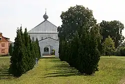 In 1996, the Divine Liturgy was celebrated in the church by Metropolitan Bazyli of Warsaw and all Poland. In 2001, the church was visited by Patriarch Peter VII of Alexandria, accompanied by Metropolitan Sawa of Warsaw and all Poland and Archbishop Jeremiah of Wrocław and Szczecin.[4] That same year, a renovation of the entire building began. The roof was replaced with zinc sheeting, the foundations were reinforced, and the facade was repainted. During the work, remnants of plaster and fresco fragments from the older church were discovered. The historic gate, built alongside the original church and once leading to its grounds, was also restored.[4] In August 2014, crosses were blessed and placed atop the church domes.[8] The renovation was completed in 2016.[9] The dedication of the church took place on 15 May 2016, led by Metropolitan Sawa of Warsaw and all Poland, assisted by Bishop George of Siemiatycze and Archbishop Vladimir of Volodymyr-Volynskyi and Kovel (Ukrainian Orthodox Church). On the same day, relics of the Massacre of the Innocents were placed in the church altar.[10]