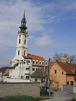 The iconostasis of the church was painted by Arsenije Teodorović in 1799.[1] During the Hungarian Revolution of 1848 Hungarian soldiers burned part of the iconostasis along with church archives.[3] During World War I, Austro-Hungarian authorities confiscated three out of four bells for wartime use, with replacements arriving in 1922 after the establishment of the Kingdom of Serbs, Croats and Slovenes.[3]