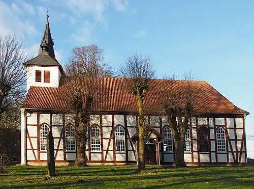 Exactly when the Reformation was introduced into the parish of Sülze cannot be stated with certainty, but based on the adoption of the new doctrine, it can be deduced that it would have been no later than 1529.[4] In addition to the villages of Eversen and Sülze, parish of Sülze was joined by Altensalzkoth in 1725, Huxahl, Lindhorst und Diesten in 1869, Feuerschützenbostel in 1927, Kohlenbach in 1963, Bergen in 1971 and Miele und Rehwinkel in 2001.