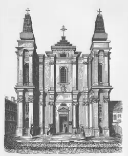 Woodcut of the church by Michał Starkman (c. 1855)