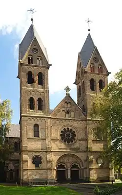 The Church of St. Lambertus (German: Pfarrkirche St. Lambertus), known locally as the Immerather Dom (meaning "Cathedral of Immerath"), was a Roman Catholic parish church in the village of Immerath, Erkelenz in North Rhine-Westphalia, Germany. A church dedicated to Saint Lambert of Maastricht had existed on the site since at least the 12th century, being rebuilt and enlarged a number of times before being demolished in 1888. It was replaced by Romanesque Revival church building, which was constructed between 1888 and 1891 to designs of Erasmus Schüller.
