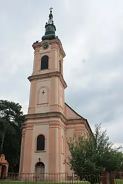 The Church of St. Nicholas (Serbian: Црква светог Николе) in Erdevik is a Serbian Orthodox church in Vojvodina, Serbia dedicated to Saint Nicholas. The church was constructed in 1804.[2] The building is one of three churches in the village with the second one being Roman Catholic church from 1890 and the third Slovak Evangelical Church from 1902.[2][3] Iconostasis of the church was painted in 1807 by Georgije Bakalović.[4] The church is a single-nave building with a semicircular altar apse in the east, and a representative bell tower.[5] The Institute for the Protection of Cultural Monuments of Sremska Mitrovica adopted the initial decision on protection (no. 189) of 8 December 1977 while the building was listed as a protected cultural heritage of Serbia in 1997.[5]