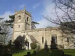 The limestone Perpendicular building has a stone slate roof. It consists of a nave, chancel, and porch with a west tower.[1] The tower contains a ring of 5 bells,[8] three of which were cast in 1717.[9]
