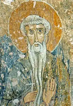 Medieval frescoes used to cover the entirety of the church's interior, though only some 70 fragments survive until today. Until 1961, the existence of a medieval mural layer was unknown because the walls were covered with oil paint in the 1910s. The medieval frescoes were uncovered and restored between 1970 and 1975 by a team under Dragomir Peshev.[8] The dating of the frescoes is as controversial as that of the church itself. Bozhkov places the painting of the murals in the 12th century, while scholars Bistra Nikolova and V. Mavrodinova believe they were created in the 13th century. According to Nikolova, the mural inscriptions in Medieval Greek (as opposed to Middle Bulgarian) are evidence that the frescoes were painted during the Byzantine rule of Bulgaria (1018–1185). At the time, the region of Patalenitsa would have belonged to the Byzantine bishopric centred at Philippopolis (modern Plovdiv).[3]
