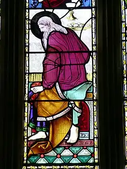 Unusually, the stained glass windows include a depiction of a lone Judas Iscariot with a dark halo.[7] Inside the church is a brass reading desk originally made in East Anglia.[8]