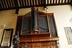 A ceremony marking the completion of the renovations was held on 16 April 1868, when the Bishop of Winchester reopened the church.[29] Amongst the items that had been given to the church were a new font, a lectern (carved by Revd A. W. Deey), several new windows, and new seating for the chancel.[29] The most notable addition was an organ, paid for by public subscription (at a cost of £850[30]), and built by Messrs Speechly and Ingram. It was used until its rebuilding in 1966, and in 1898 a gas engine to power it was bought from Winchester Cathedral for £25.[29] A permanent choir was also created, under the direction of Mr H. D. Newman, the organist.[29] A number of other modifications to the church were made – a window was added to the tower and a staircase to the belfry, the west door was filled in with stone, and new pews installed – but, in Couper's words, "on the whole the restoration was carried out with restraint, and the interior of the Parish Church returned in essence very nearly to what it had been in the 15th century."[30] The church now seated 816 people, compared with the 899 it seated before the restoration.[30] To cater for the enlarged population of Alton, a new church was built (All Saints' Church) and the parish divided.[30]