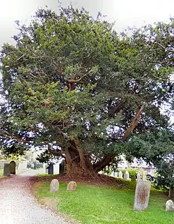 The parish of Shirwell was originally an Anglo-Saxon ‘Hundred’ and is one of the oldest ecclesiastically appointed Deaneries in the Exeter Diocese.[3] The two yew trees opposite the south porch were thought to be 13th-century, making them as old as the oldest part of the present church on the site. However, a survey by the Yew Tree Campaign states that they are actually 1,500 years old which means they probably date to a church on the site which predates the present one.[4]