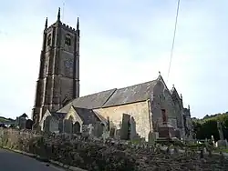 A large parish church for the size of the village owing to the time when silver was mined in the area, the church is dedicated to St. Peter ad Vincula ("St. Peter in Chains") and is derived from the ancient Basilica of San Pietro in Vincoli in Rome. Built with stone rubble with ashlar dressings and with a dressed stone façade to the south porch, the structure was constructed in the Early English style with 13th-century materials surviving in the south transept and on the south side of the chancel and nave. In the early 15th century the north aisle and north chancel chapel, north porch and west tower were added, and in the late 15th or early 16th-century a north transept. The south porch was rebuilt in 1725,[3] while the church was restored in 1858 and again in 1881.