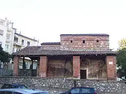 The Church of the Archangel of the Metropolis or Taxiarchis of the Metropolis (Greek: Ιερός Ναός Ταξιάρχη Μητροπόλεως) is a Byzantine church in the medieval old city of Kastoria, in northern Greece. Dedicated to the Archangel Michael, it was built in the 9th or 10th century. The use of ancient spolia indicates that it was possibly built on the remains of an early Christian basilica.[1][2] The church is a small three-aisled basilica, with a narthex and a dome, added after the original construction was finished. A few traces of its original fresco decoration show similarities with the art of Cappadocia, but are too fragmentary to draw any conclusions.[1][2] The current fresco series dates from the renovation of the church in 1359/60, and represent a distinctive regional style evident in other churches in Kastoria, but also Ohrid.[1][2]