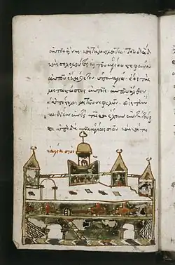 Bagatti's theory is supported by Bargil Pixner (May 1990 Biblical Archaeology Review),[4] who argues that the 6th-century Madaba Map shows two churches next to each other - the Basilica of Hagia Sion and the "Church of the Apostles", the putative Jewish-Christian synagogue of Mount Zion.[5]