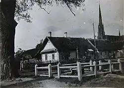 The first parish in Hyervyaty was established in 1526 by the archbishop John.[3] Gradually it fell into decline and in 1621 Eustachy Wołłowicz constructed the new wooden church. It was destroyed by fire in 1736.[4] Almost a hundred years later the philanthropist reconstructed the church.[5] In 1860, Kazimir Domeyko founded the stone bell tower and reconstructed the church in 1862. The last restoration was executed in 1894-1895, but three years later the church was demolished.